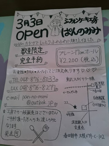 シフォンケーキ工房「ぱんのみみ」さん