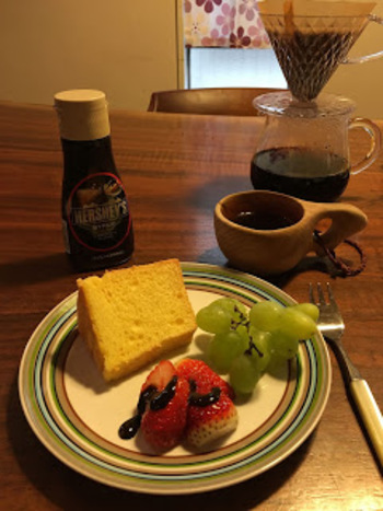 甘すぎないから、お代わりはチョコシロップをたらりとかけて食べたり、生クリームを添えて食べたり…